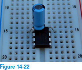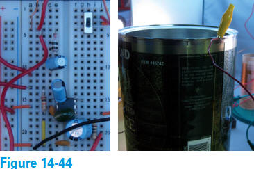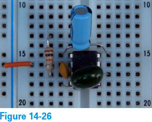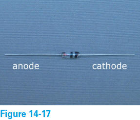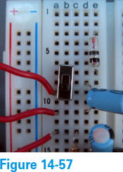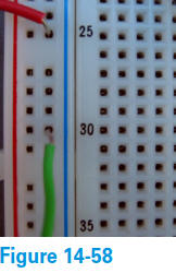 4. Insérez l'anode de la diode au germanium 1N34A dans l'orifice 3e et la cathode (repérée par des rayures noires) dans l'orifice 7e. (Voir figure 14-57.)