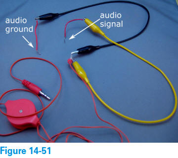 Connectez la prise audio 3,5 mm à votre iPod, iPhone ou autre lecteur de musique et allumez l'interrupteur d'alimentation de votre plaque d'essai. (Voir figure 14-54.)