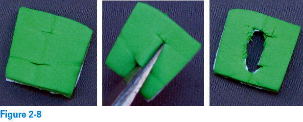 c. Découpez soigneusement la mousse entre les fentes afin de former un trou d'environ 1,25 cm de haut et 0,75 cm de large. (Ne vous inquiétez pas des dimensions exactes ni de la précision de la découpe.)