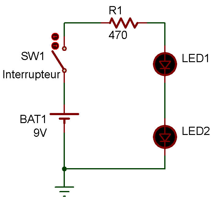 Il est clair que le courant n'a qu'un seul chemin et que les deux LED se trouvent sur ce chemin.