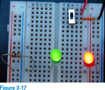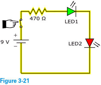 La figure 3-21 montre le schéma du circuit série à deux LED (avec de la couleur et une aiguille de commande de l'interrupteur ajoutée).