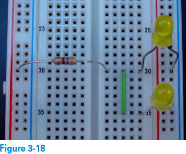 Suivez ensuite ces étapes pour ajouter le circuit à deux LED en parallèle à votre platine d'expérimentation (voir la figure 3-18) :