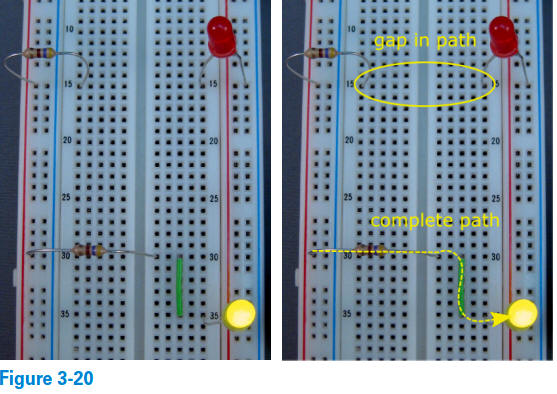 La figure 3-20, à gauche, montre à quoi devraient ressembler vos circuits une fois les LED retirées.
