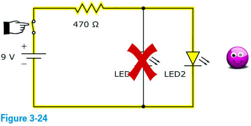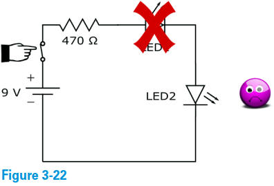 Lorsque vous retirez la LED1, le chemin est interrompu, donc la LED2 ne s’allume pas, comme illustré dans la Figure 3-22.