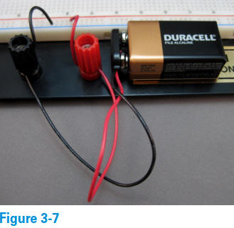 Pour faciliter la connexion de votre batterie à votre platine d'expérimentation, enclenchez la clip de batterie (parfois appelée connecteur à enclenchement) sur les bornes.