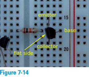 Ces broches sont connectées à la base, au collecteur et à l'émetteur à l'intérieur du boîtier, comme illustré sur la figure 7-3 et indiqué sur le brochage figurant sur l'emballage ou la fiche technique (Datasheet et pinout disponible en ligne).