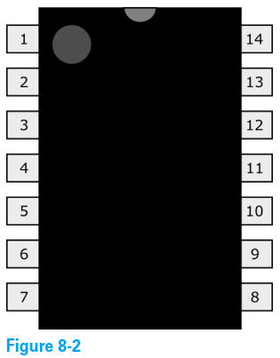 Les broches sont représentées par les cercles foncés entourant le circuit intégré.