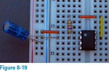 résistance de 100 Ω dans le breadboard, comme illustré sur la figure 8-29.