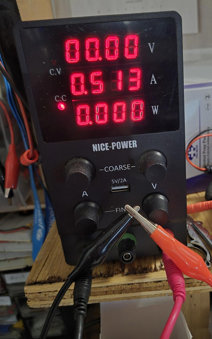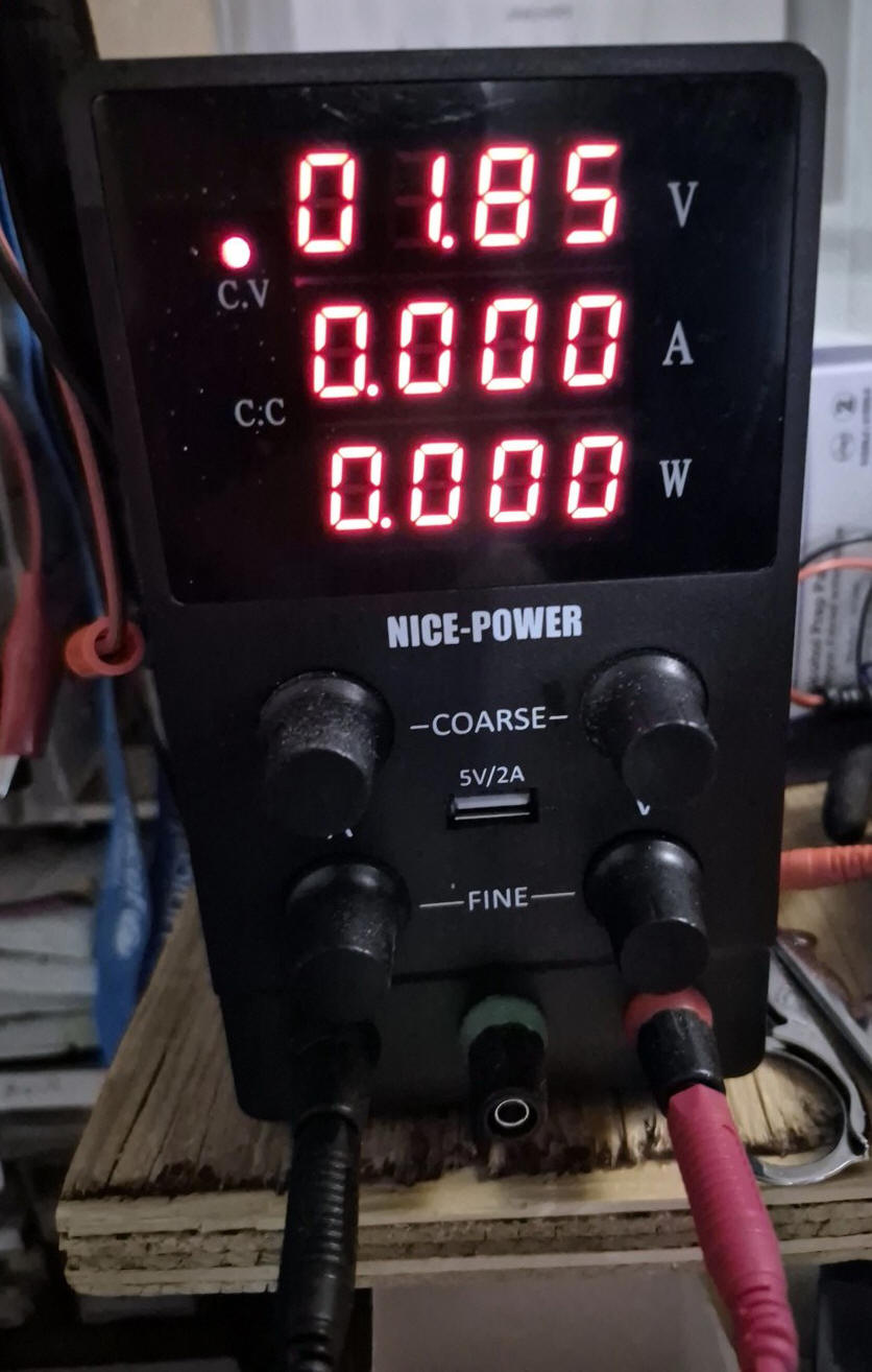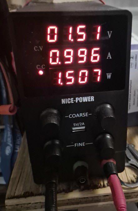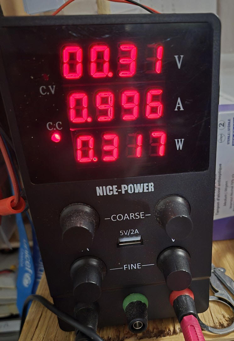 To charge the 500F capacitor Using the power supply Limit the current to 1A. Without a protection module The voltage must be a maximum of 2.7V. Charge until the amperage is very low. Takes approximately from 22 to 70 minutes per capacitor. |