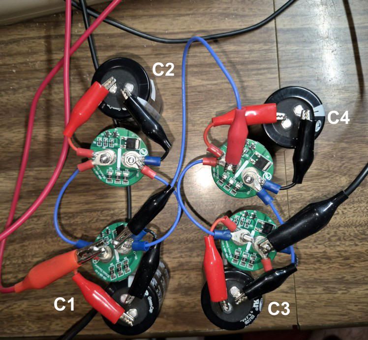 Pour les condensateurs en série vous pouvez utiliser un module de protection pour supercondensateur.