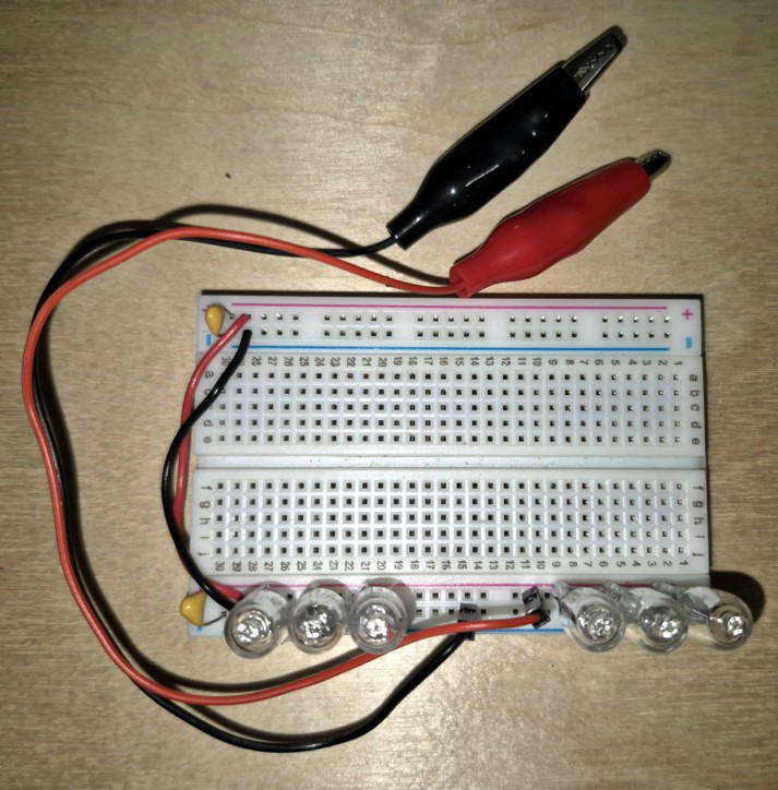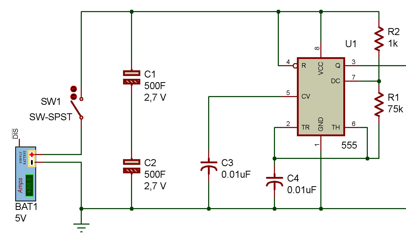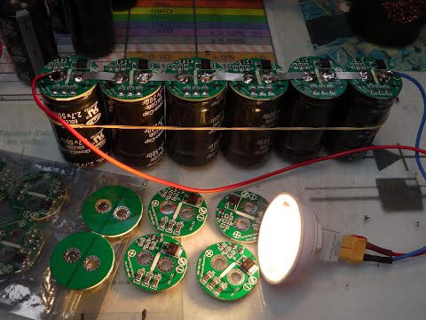 expérimenter avec n'importe lequel supercondensateur. (ex. 10F, 70F, 500F) |