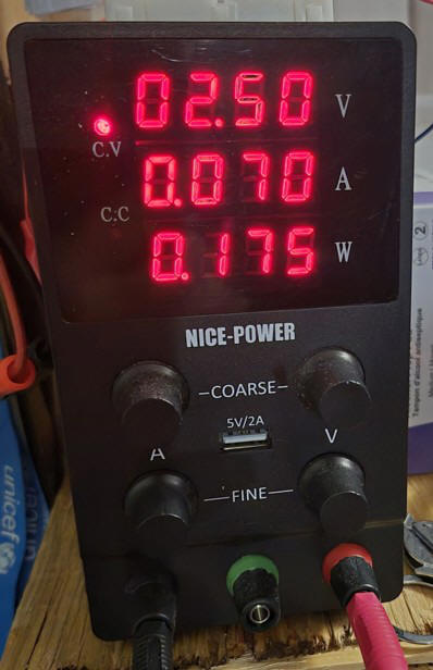 Pour charger le condensateur 500 F Avec le power supply Limiter le courant à 1A. Sans un module de protection La tension doit être Max 2,7V. Charger jusqu'à l'ampérage soit très bas. Prend environs de 22 à 70 par minutes condensateur. |