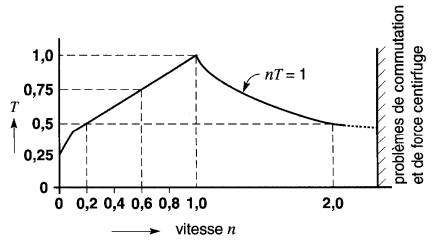 Cette équation indique qu'on peut augmenter le couple d'un moteur en augmentant, soit le courant I dans l'induit, soit le flux θ provenant des pôles.