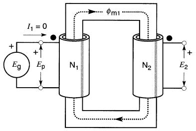 Sur la Fig. 30-4, une bobine à noyau d'air est alimentée par une source de tension Eg. Le courant magnétisant Im produit un flux total Φ qui est dispersé autour de l'enroulement.