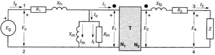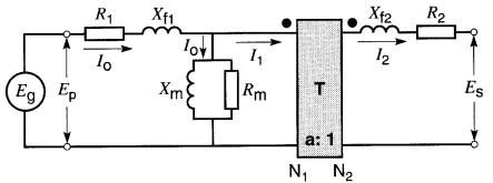 R1 = 18Ω R2 = 0,005Ω Xf1 = 40Ω Xf2 = 0.01Ω E1 = 14,4 kV E2 = 240 V