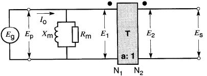Ce courant Im est appelé courant magnétisant; il est déphasé de 90° en arrière de la tension Eg, comme dans toute inductance (Fig. 30-2b et 30-3b).